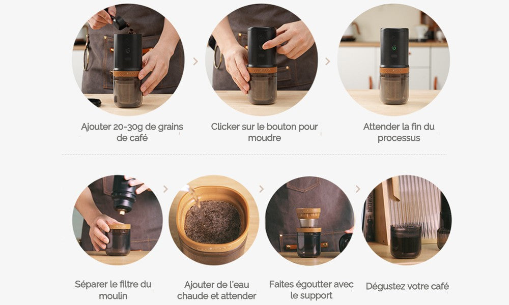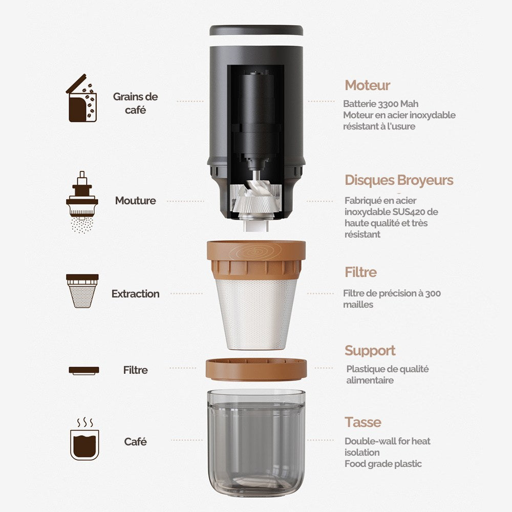 Grinduo®, Moulin À Café Portable Et Cafetière Filtre